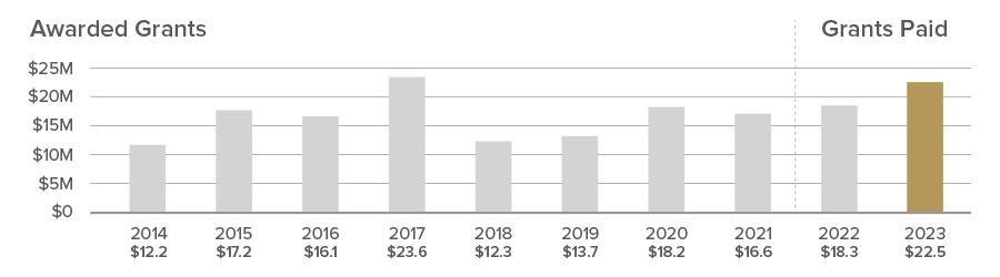 Since 1998, the Nina Mason Pulliam Charitable Trust has distributed grants totaling more than $380 million to 1,023 organizations. In 2023, the Trust awarded 192 grants totaling more than $22 million to nonprofit agencies that help people in need, protect animals and nature, and enrich community life in Arizona and Indiana.
