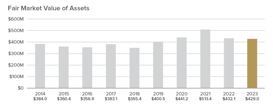 The Nina Mason Pulliam Charitable Trust conducts its financial affairs to the highest standards. The Board of Trustees along with the Trust staff and an external investment consultant oversee investments with the goal of maintaining or increasing the real value of the portfolio over the Trust’s 50-year life.