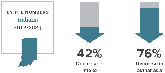Focused collaboration among Indianapolis’ leading animal welfare organizations has substantially improved the plight of pets in Marion County, reducing euthanasia rates of cats and dogs countywide by nearly 85% since 2012 and increasing pet adoptions by nearly 30% in the same timeframe.